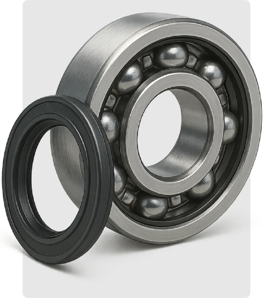 Los retenedores están diseñados para sellar ejes giratorios y evitar la salida de aceite, grasa o refrigerante, mientras que los cojinetes permiten una rotación estable, reducen el desgaste mecánico y prolongan la vida útil de partes como ruedas, transmisiones, bombas y motores.